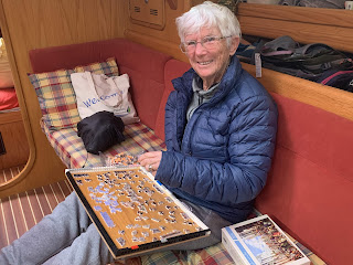 Toujours et encore dans la caleta Villarica. Rien de bien palpitant aujourd'hui sous le ciel gris de Patagonie. Les jours passent et... se ressemblent. La pluie, toujours présente nous accompagne de son doux cliquetis, devenu presque rassurant. Je dit rassurant car nous avons décidé ce matin de ne pas partir voir le glacier Amalia, car météo trop mauvaise et peu de visibilité. Donc la pluie qui est tombée (presque) en continu aujourd'hui nous a conforté dans notre choix. Christine avance dans son puzzle, Yves dans son livre, bref on commence à être rodés dans l'art de faire passer le temps. Avant que le coup de vent n'arrive, Yves a décidé de mettre le 5ème bout à terre. On n'est jamais trop prudents. Encore une journée à attendre, encore quelques mots croisés, quelques pages d'un livre, quelques notes sur un carnet, quelques pièce du puzzle qui s'assemblent et surtout : encore 3 apéros, moment tant attendu par tous! (certains plus que d'autres:) Vivement Dimanche !
